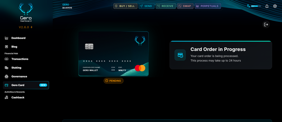 Die Gero Karte ist die erste echte Cardano-basierte Krypto-Debitkarte, die nahtlos mit deiner non-custodial Gero Wallet verbunden ist. Das bedeutet: Du behältst zu jeder Zeit volle Kontrolle über